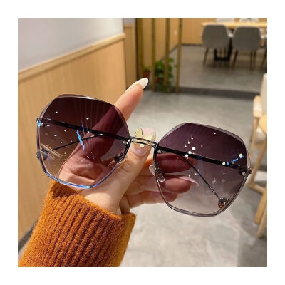 商品名称:米季琳2022新款新款无框切边太阳镜潮小红书气质墨镜女大脸显瘦时尚眼镜防蓝光 渐变进黑灰色