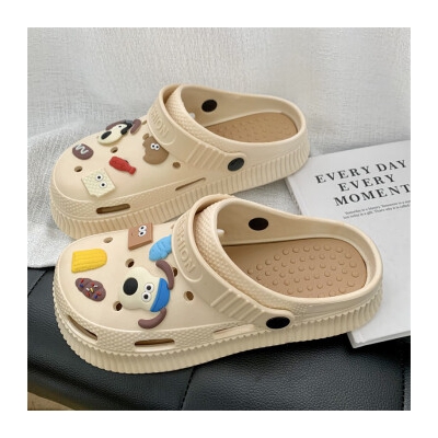 她享厚底增高洞洞鞋女外穿防滑松糕高跟包头拖鞋 TD905 咖色 38/39