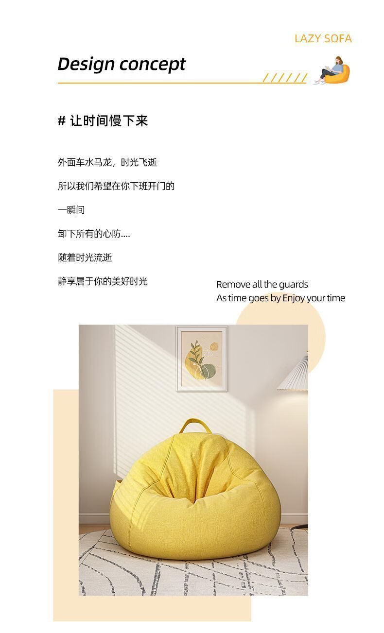 商品名称:萌依儿懒人沙发单人豆袋可睡可躺家用宿舍阳台椅子网红躺卧豆包卧室 卡其色(送抱枕) 旗舰款适合身高175-185CM送脚蹬